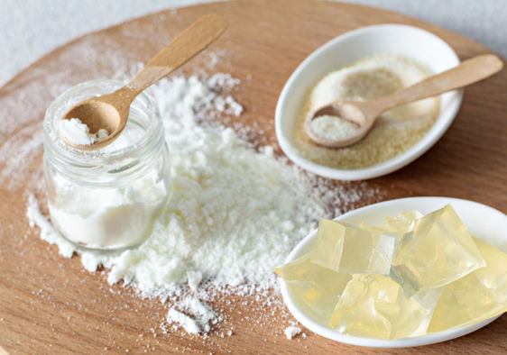 ژلاتین با پردازش قسمت های حیوانی برای استخراج کلاژن و تبدیل آن به ژلاتین تولید می شود. این ماده بی طعم و شفاف دارای بافتی ژله مانند است. کلاژن و ژلاتین هر دو پروتئین های مشابهی دارند و ممکن است مزایای مشابهی داشته باشند.