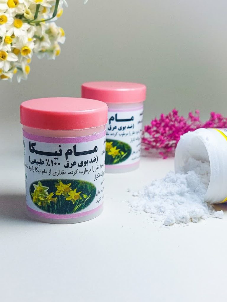 مام پودری نیکا، محصولی است طبیعی که با دو رایحه گل نرگس و گل طبیعت بهار تولید می شود. این محصول برای استفاده به عنوان مام پودری جهت رفع بوی تعریق بدن استفاده می شود.