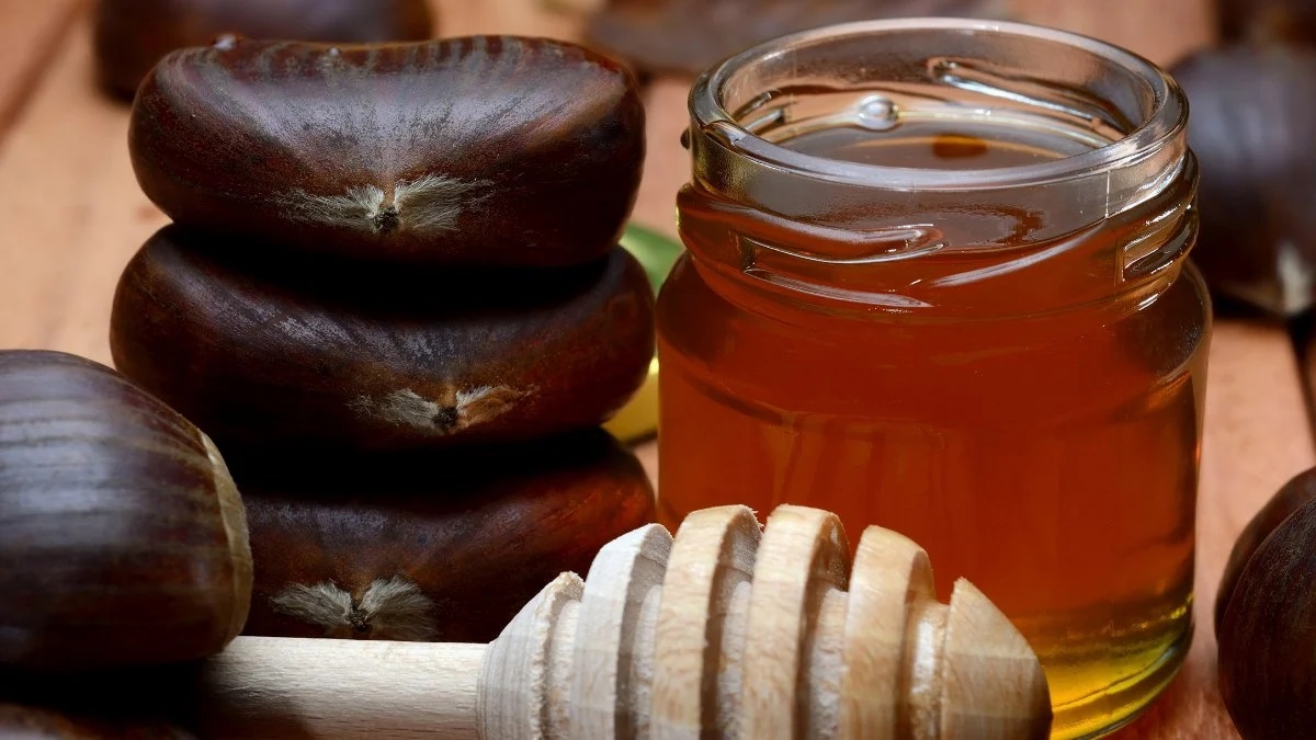عسل شاه بلوط منبع خوب پتاسیم، منگنز و کلسیم، سدیم، فلوئور، مس، روی و آهن است. ویتامین های گروه B و,C, K,E و PP در آن باعث تقویت عمومی بدن می شود.