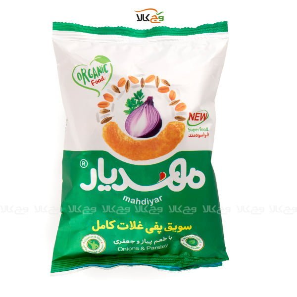 پفک غلات پیاز و جعفری مهدیار خواص فراوانی دارد و یک جایگزین خوب برای پفکهای مضر به شمار میرود.