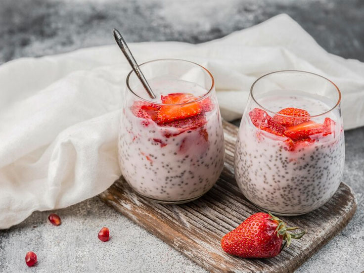- برای یک میان وعده رژیمی یا ناهار سبک، 1 تا 2 قاشق غذاخوری (15 تا 30 میلی لیتر) دانه چیا را در یک فنجان پنیر کوتاژ بریزید.