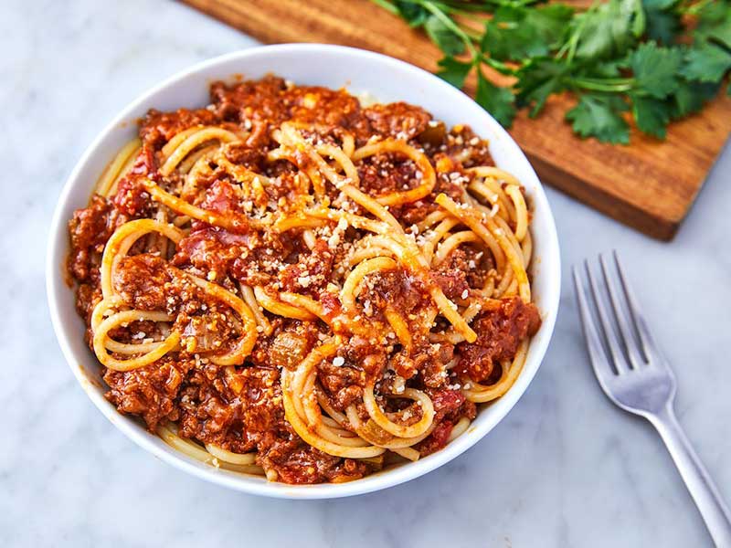 ۴.ماکارونی با سس گوشت چرخ کرده: