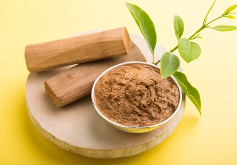 گقته می شود که استفاده از خمیرچوب صندل سفید برای بیماریهای پوستی هم مفید است و در مواردی چون خارش پوست و یا کم کردن التهاب پوست، درمان آکنه و جوشهای صورت مانند پیله ابریشم هم کاربرد دارد این گیاه به مانند یک عامل ضد التهاب می تواند تاثیرگذار باشد. به این صورت که گردش خون در پوست بدن را تقویت می کند و باعث دفع مواد مضر متابولیسمی و تغذیه مواد مغذی برای پوست می شود.