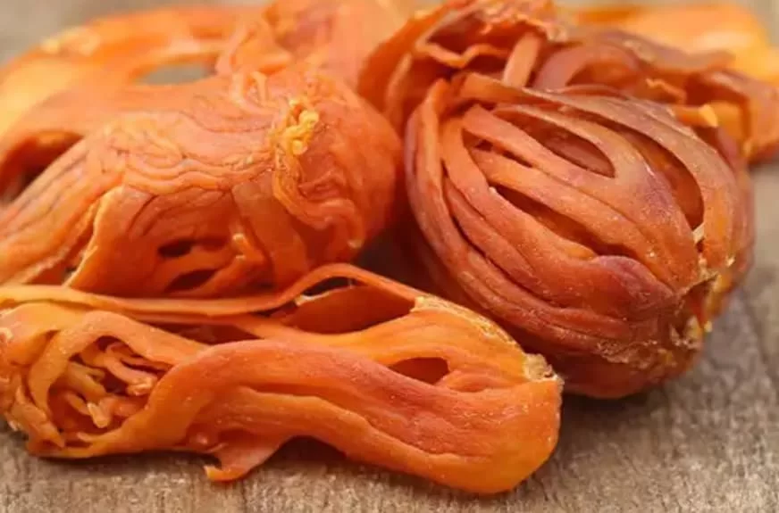 میوه درخت جوز هندی شبیه زردآلو، که رنگ آن از زرد لیمویی تا قهوه ای روشن است.